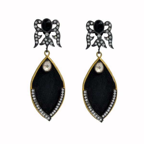 Loading... Please wait..."Stunning and Mystical" These mystic night drops can be worked into many looks .These chic drops are set in 18K over 925 sterling silver and are embellished with black tourmalines, swarovski elements and wood to make you stand out no matter what the occasion.